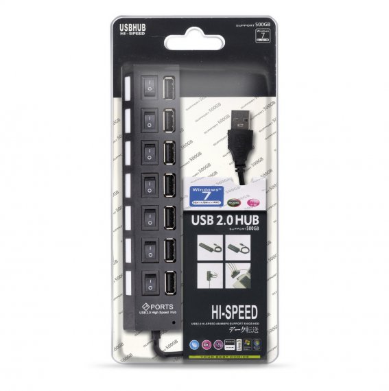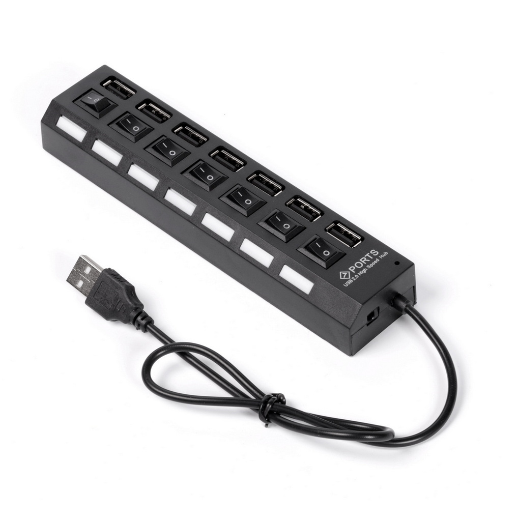 USB 2.0 хаб с выключателями, 7 портов, СуперЭконом, черный, SBHA-7207-B