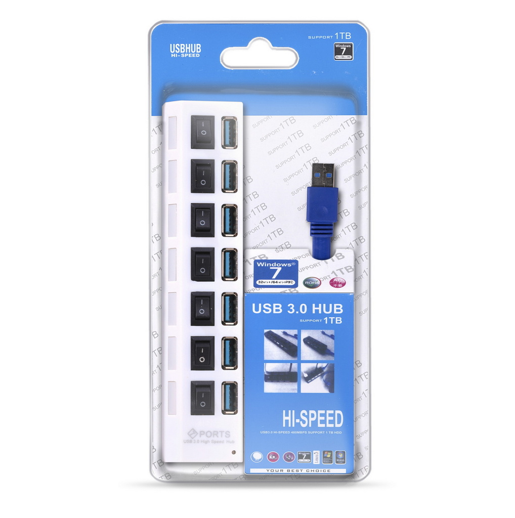 USB 3.0 хаб с выключателями, 7 портов, СуперЭконом, белый, SBHA-7307-W/30