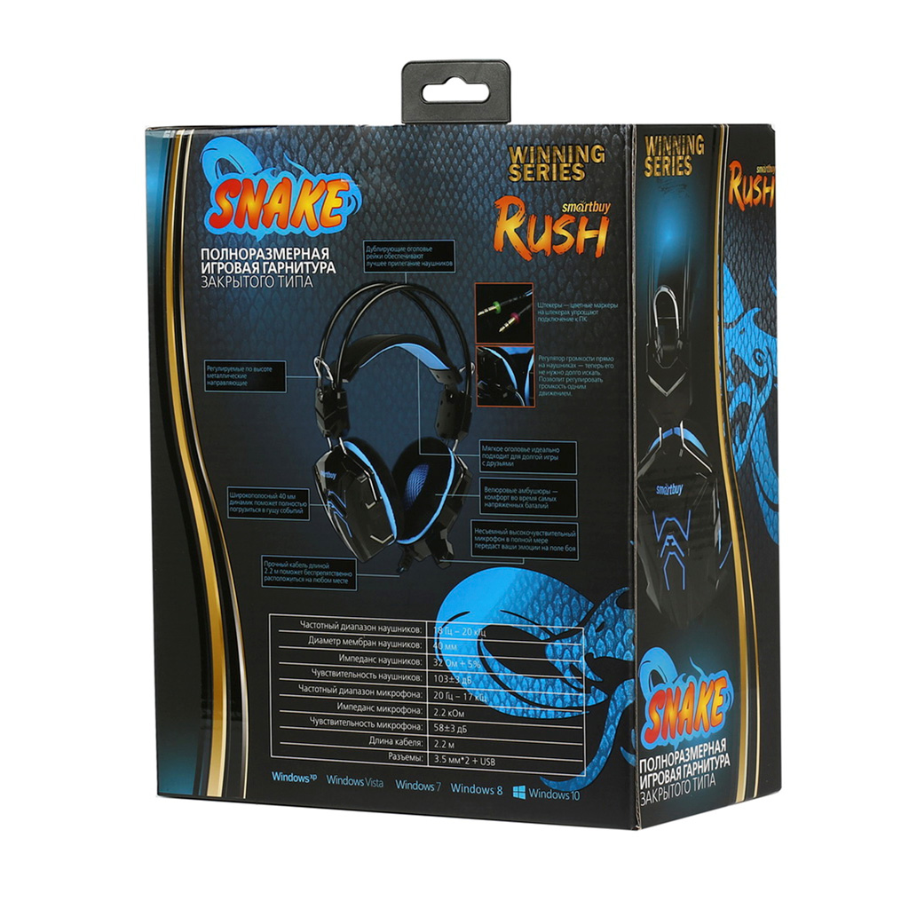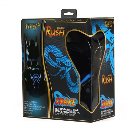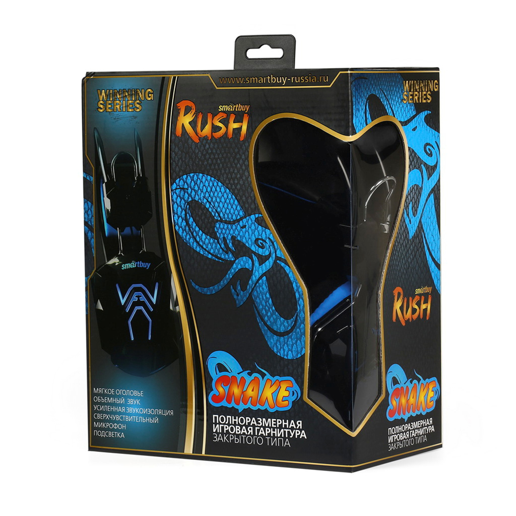 Игровая гарнитура RUSH SNAKE, динамики 40мм, велюровые амбушюры, черн/синяя (SBHG-1000)