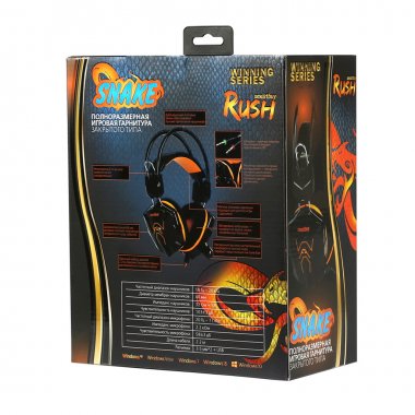 Игровая гарнитура RUSH SNAKE, динамики 40мм, велюровые амбушюры, черн/оранж (SBHG-1100)