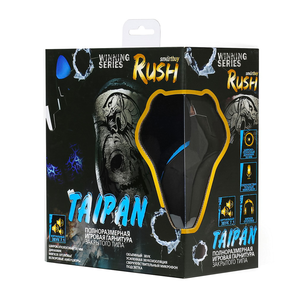 Игровая гарнитура RUSH TAIPAN, динамики 50мм, велюровые амбушюры, вирт.звук 7.1, чер/син (SBHG-3000)