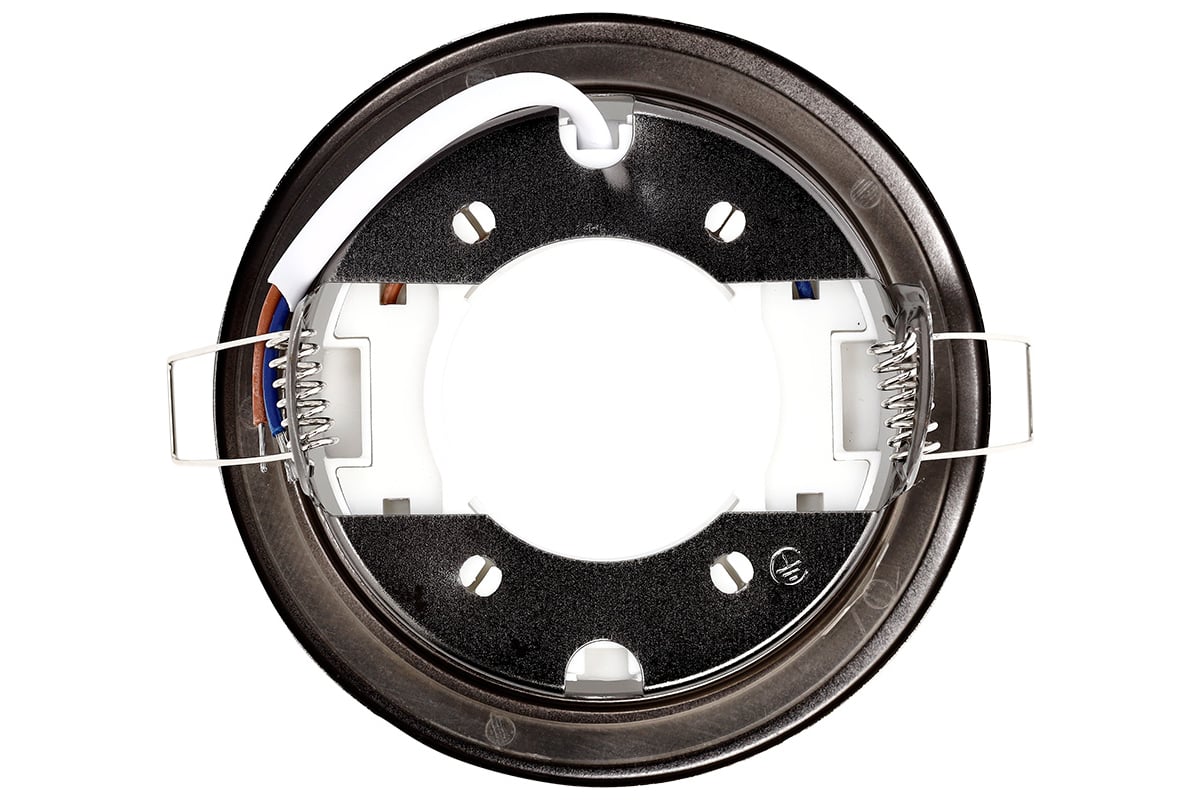 Встраиваемый светильник Smartbuy под лампу GX53 черный металл SBL-04BKM-GX53 предназначен для точечного или декоративного освещения внутри помещения. Работает со сменными лампами с патроном GX53. В комплекте термокольцо для установки в натяжной потолок.