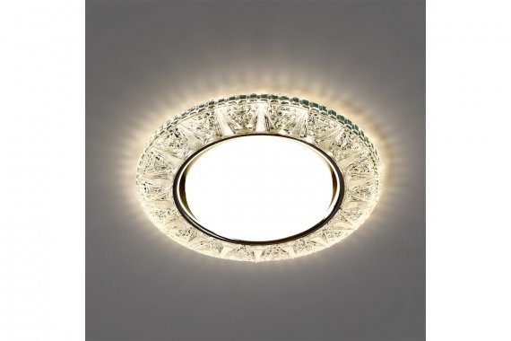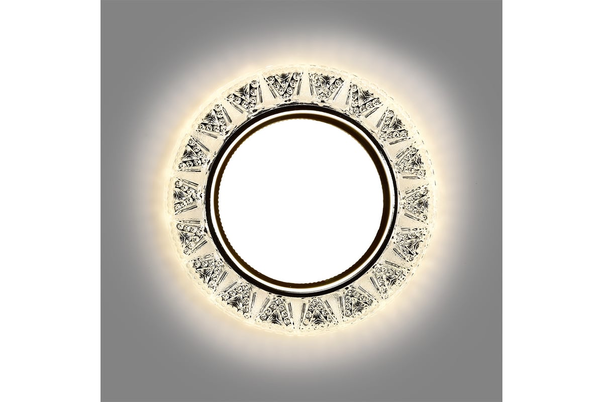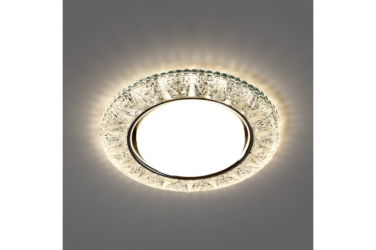 Встраиваемый светильник Smartbuy под лампу GX53 с LED подсветкой прозрачный SBL-06CL1-GX53 предназначен для точечного или декоративного освещения внутри помещения. Работает со сменными лампами с патроном GX53 и со светодиодной подсветкой дневного света. Имеет 3 режима работы: только лампа, только подсветка, лампа+подсветка.