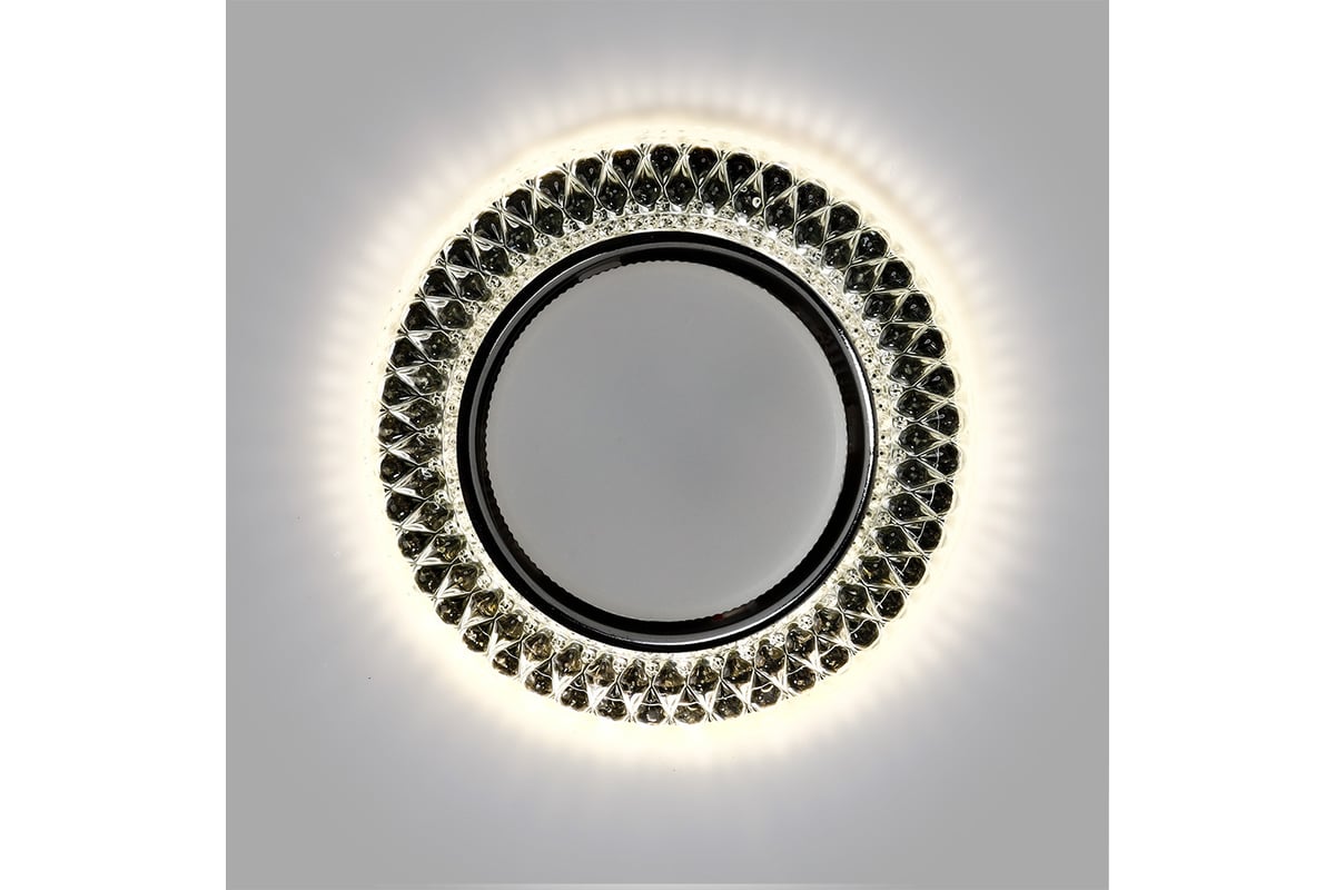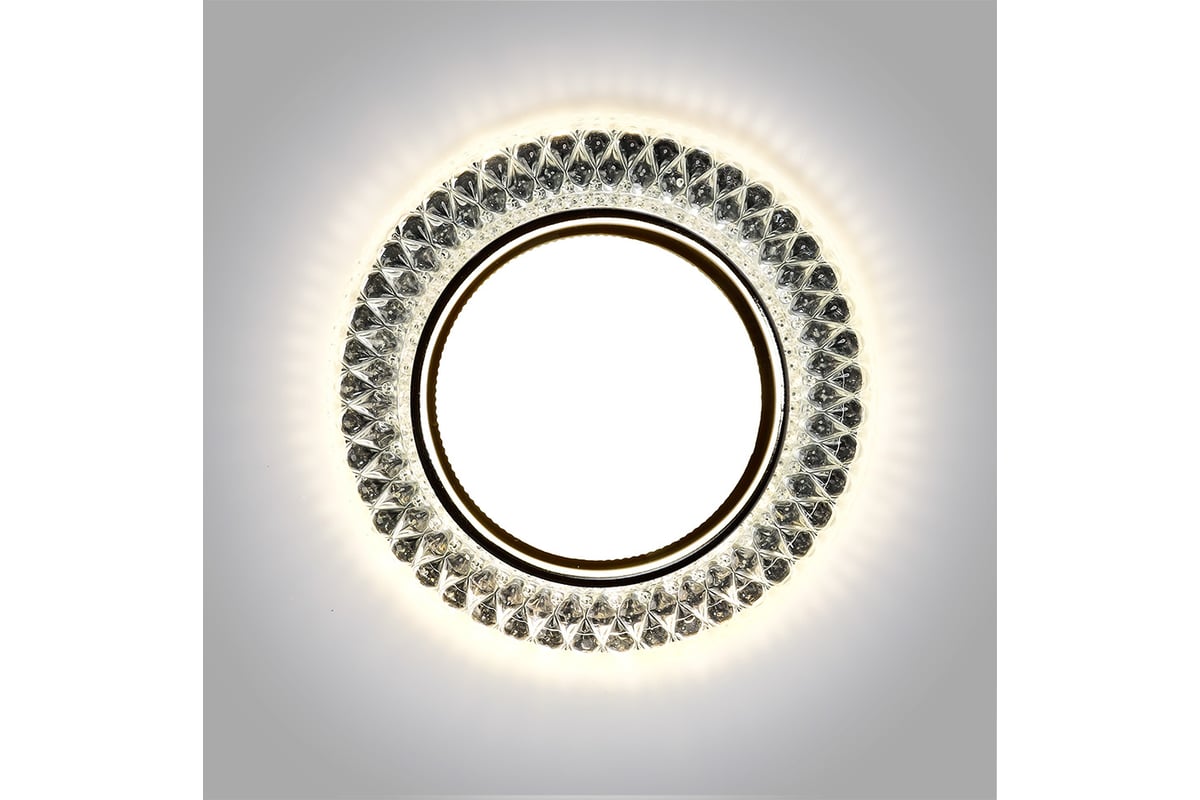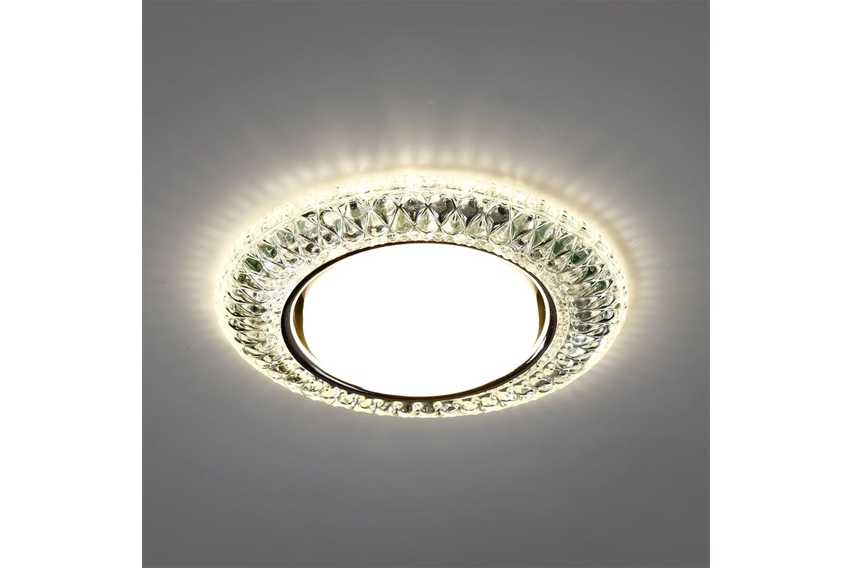 Встраиваемый светильник Smartbuy под лампу GX53 с LED подсветкой прозрачный SBL-06CL2-GX53 предназначен для точечного или декоративного освещения внутри помещения. Работает со сменными лампами с патроном GX53 и со светодиодной подсветкой дневного света. Имеет 3 режима работы: только лампа, только подсветка, лампа+подсветка.