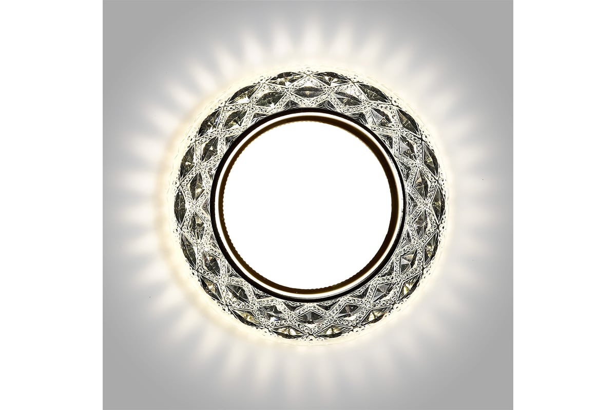 Встраиваемый светильник Smartbuy под лампу GX53 с LED подсветкой прозрачный SBL-06CL3-GX53 предназначен для точечного или декоративного освещения внутри помещения. Работает со сменными лампами с патроном GX53 и со светодиодной подсветкой дневного света. Имеет 3 режима работы: только лампа, только подсветка, лампа+подсветка.