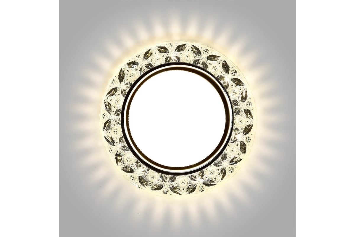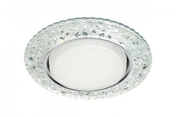 Встраиваемый светильник Smartbuy под лампу GX53 с LED подсветкой прозрачный SBL-06CL4-GX53 предназначен для точечного или декоративного освещения внутри помещения. Работает со сменными лампами с патроном GX53 и со светодиодной подсветкой дневного света. Имеет 3 режима работы: только лампа, только подсветка, лампа+подсветка.