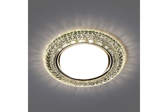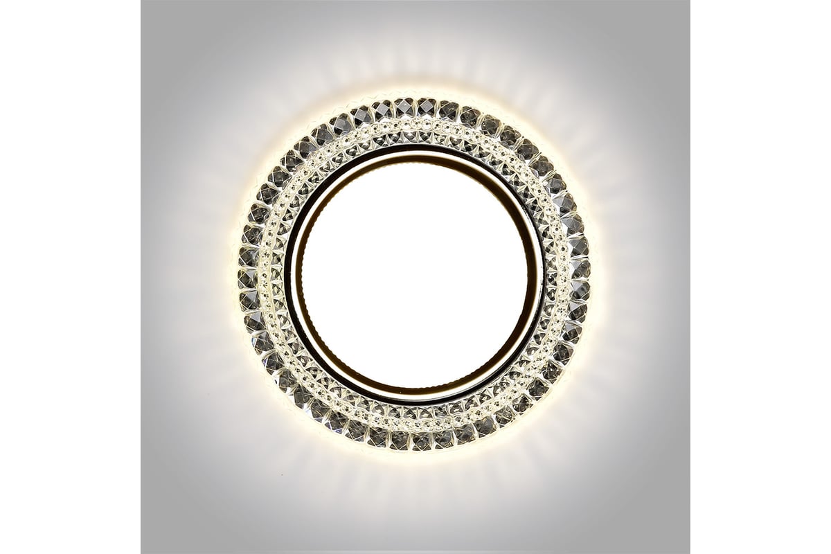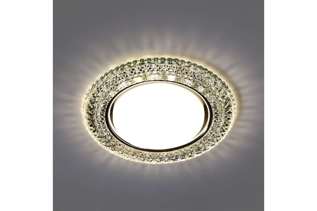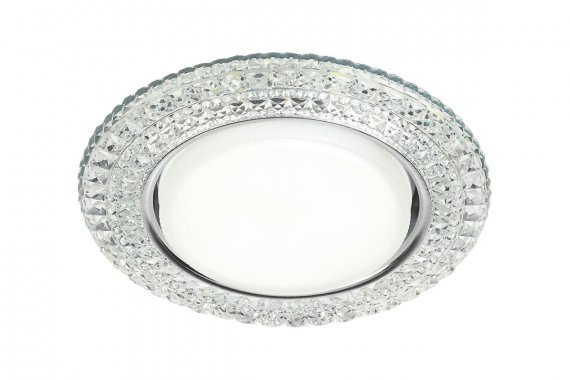 Встраиваемый светильник Smartbuy под лампу GX53 с LED подсветкой прозрачный SBL-06CL5-GX53 предназначен для точечного или декоративного освещения внутри помещения. Работает со сменными лампами с патроном GX53 и со светодиодной подсветкой дневного света. Имеет 3 режима работы: только лампа, только подсветка, лампа+подсветка.