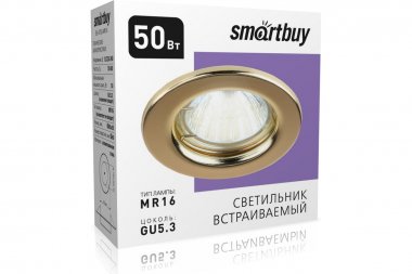 Встраиваемый светильник Smartbuy под лампу MR16 золото плоский SBL-07GD-MR16 предназначен для точечного или декоративного освещения внутри помещения. Работает со сменными лампами с патроном GU5.3.