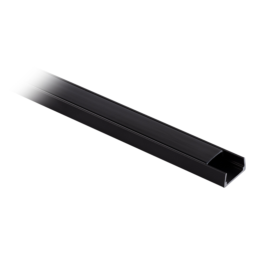 Черный алюминиевый накладной профиль длиной 2000 мм и сечением 16 на 7 мм. Подходит для использования со светодиодными лентами. Обеспечивает качественное интерьерное освещение.
