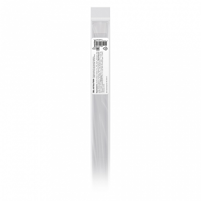 Алюминиевый накладной профиль длиной 2000 мм и сечением 16x7 мм белого цвета. Подходит для использования со светодиодными лентами. Производитель SMARTBUY.