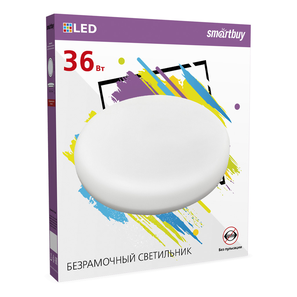 Светодиодный безрамочный светильник Smartbuy BDL круг 36Вт00К SBL-BDL-36-4K имеет малый расход потребления электроэнергии.