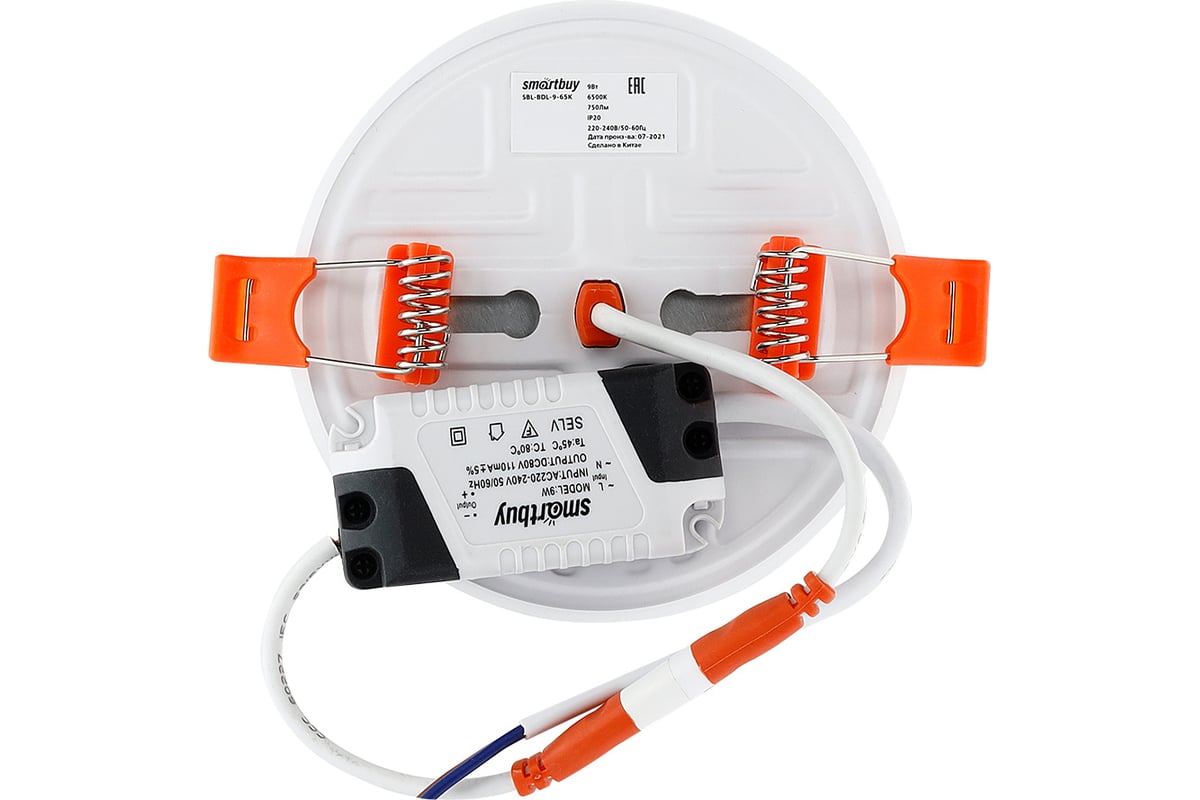 Светодиодный безрамочный светильник Smartbuy BDL круг 9Вт/6500К SBL-BDL-9-65K предназначен для монтажа в подвесные, гипсокартонные, натяжные или реечные потолки. Монтаж производится с помощью зажимных пружин в заранее подготовленное отверстие, и видимой остается только декоративная часть корпуса.