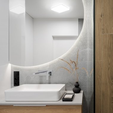 Безрамочное исполнение встраиваемого светильника обеспечивает круговое рассеивание светового потока.
