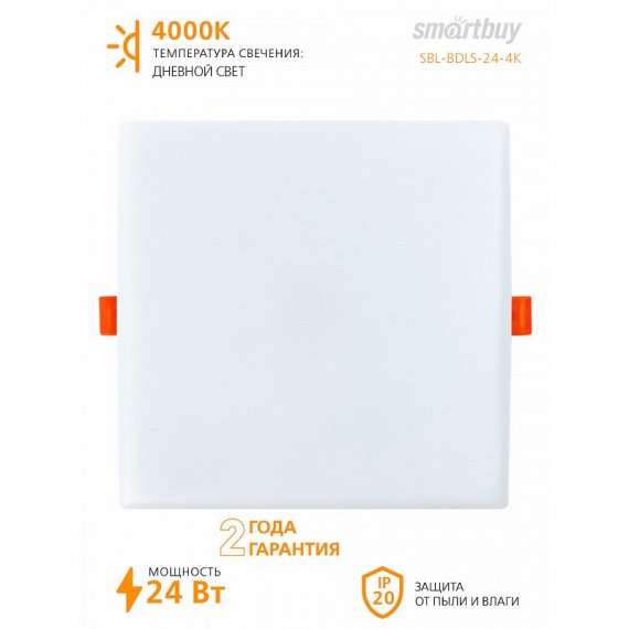 Преимущества Smartbuy BDLS квадрат 24Вт00К SBL-BDLS-24-4K
