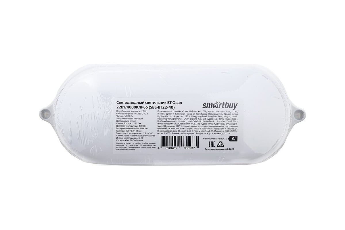 Технические характеристики Smartbuy BT овал 22Вт/4000K/IP65 SBL-BT22-40