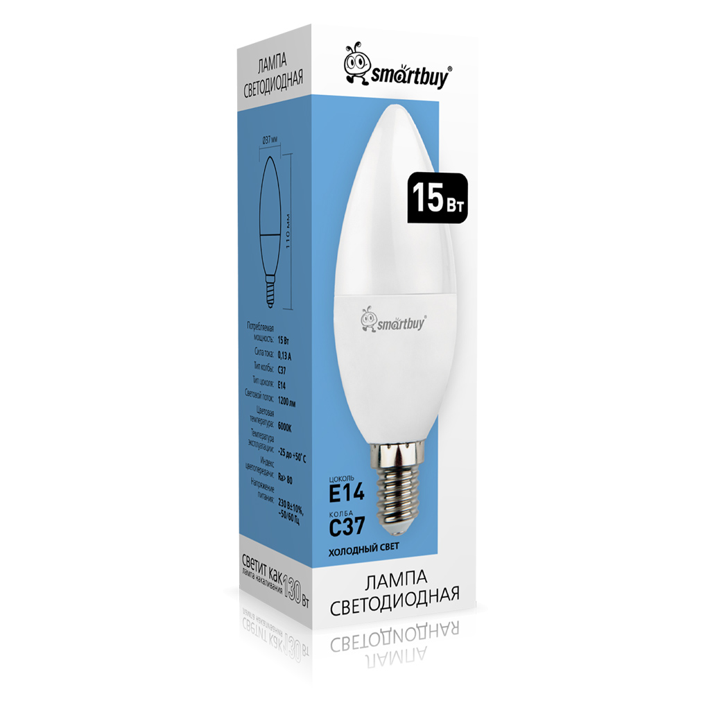 Купить по низким ценам Smartbuy SBL-C37-15-60K-E14Описание Smartbuy SBL-C37-15-60K-E14