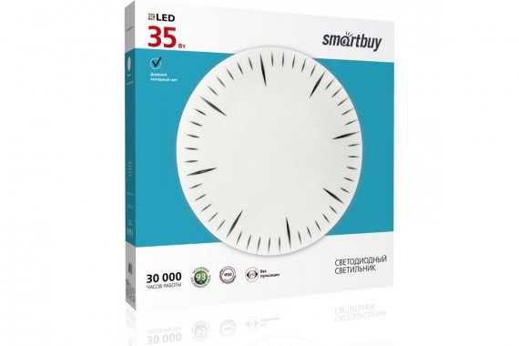 Светодиодный потолочный светильник Smartbuy LED 35W Clock SBL-Clock-35-W-6K оснащен матовой колбой, гарантирующей создание мягкого светового потока. В качестве источников освещения в нем использованы светодиоды нового поколения.
