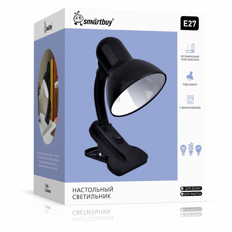 Настольный светильник Smartbuy Е27 с прищепкой черный (SBL-DeskS-Black)