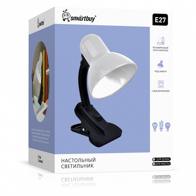 Настольный светильник Smartbuy Е27 с прищепкой белый (SBL-DeskS-White)