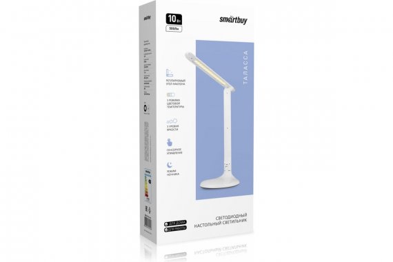 Светодиодный настольный светильник Smartbuy Таласса, 10 Вт, белый с ночником SBL-DL-10-o-w имеет три уровня яркости и три режима цветовой температуры. Режим ночника. Длина кабеля 1,5 м.