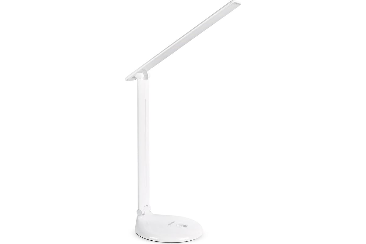 Светодиодный настольный светильник Smartbuy Таласса, 10 Вт, белый SBL-DL-10-r-w имеет три уровня яркости. Наклон головы светильника можно регулировать.