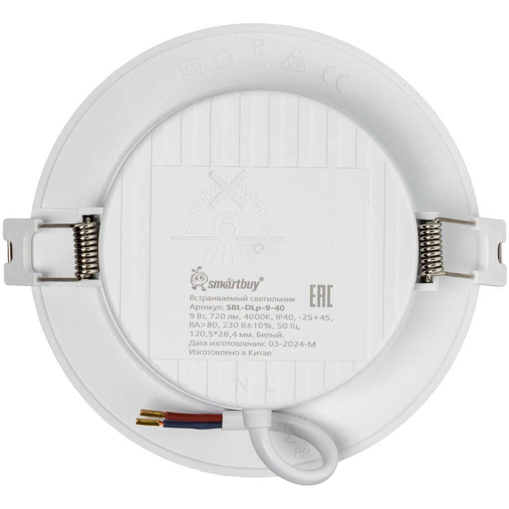 Встраиваемый (LED) светильник DL круглый пластик Smartbuy-9Вт/6500K/IP40