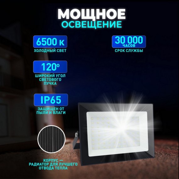 - Мощность/Цветовая температура/Степень защиты 100W/6500K/IP65