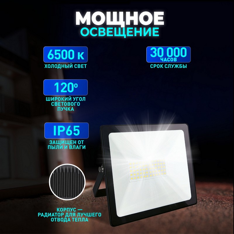 - Мощность/Цветовая температура/Степень защиты 70W/6500K/IP65