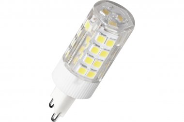 Светодиодная лампа общего и декоративного освещения. Колба лампы выполнена в форме капсулы. Лампа G9 повторяет форму и размеры стандартных галогенных капсульных ламп и идеально подходит к любому светильнику, в котором используются данные типы ламп. Сочетает в себе компактный размер и особую яркость. В светодиодных лампах серий G9 применяются высокоэффективные светодиоды, что обеспечивает высокую надежность и эффективность источников света до 80 лм/Вт. При этом коэффициент цветопередачи обеспечивается на уровне Ra>80.