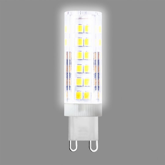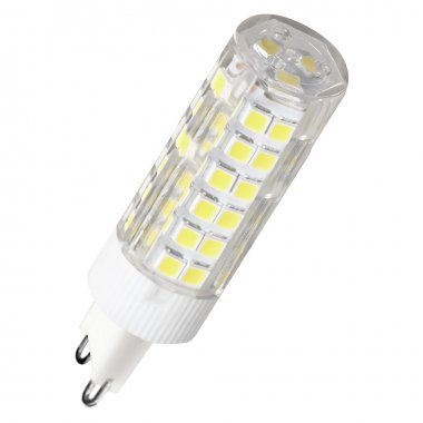 Светодиодная лампа общего и декоративного освещения. Колба лампы выполнена в форме капсулы. Лампа G9 повторяет форму и размеры стандартных галогенных капсульных ламп и идеально подходит к любому светильнику, в котором используются данные типы ламп. Сочетает в себе компактный размер и особую яркость. В светодиодных лампах серий G9 применяются высокоэффективные светодиоды, что обеспечивает высокую надежность и эффективность источников света до 80 лм/Вт. При этом коэффициент цветопередачи обеспечивается на уровне Ra>80.