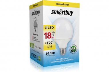 Светодиодная LED лампа Smartbuy G95-18W00/E27 SBL-G95-18-30K-E27 общего освещения, подходит для замены стандартных ламп накаливания и галогенных. Благодаря своей экономичности, длительному сроку службы и экологичности светодиодные лампы выгодно отличаются от своих предшественников. В светодиодных лампах применяются высокоэффективные светодиоды, обеспечивающие эффективность свыше 80 лм/Вт. При этом коэффициент цветопередачи ламп обеспечивается на уровне 80. Отсутствие мерцания обеспечивает меньшую утомляемость глаз.