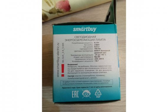 - Мощность/Цветовая температура/Цоколь 9,5W/6000K