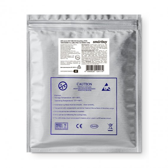 Технические характеристики Smartbuy 24V COB/252 -IP20-10W/6000K 5 м. SBL-IP20-10-6000K-COB