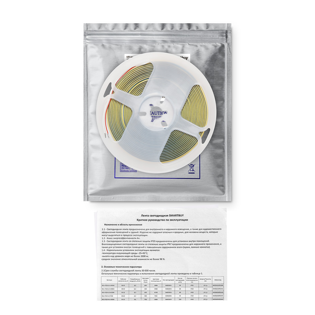 Технические характеристики Smartbuy 24V COB/480 -IP20-14W/3000K 5 м. SBL-IP20-14-3000K-COB