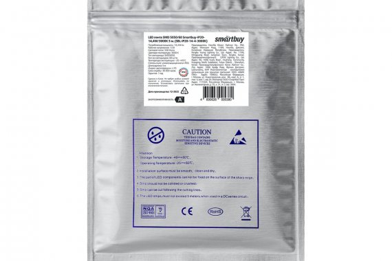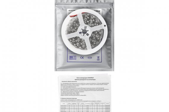 Двухслойная светодиодная LED лента SmartBuy сконструирована на базе светодиодов Epistar в корпусе 5050. Лента выпускается на гибкой печатной плате белого цвета шириной 8 мм и поставляется в катушках по 5 м. Каждая катушка с лентой SmartBuy укомплектована проводами для подключения к источнику питания. Срок службы светодиодной ленты Smartbuy составляет 30 000 часов.