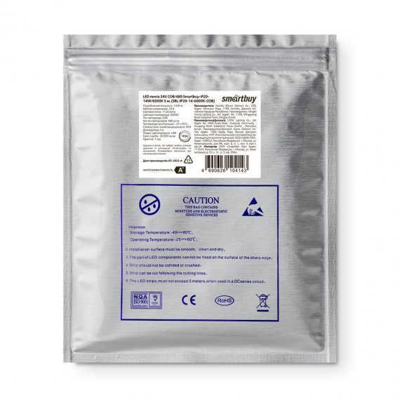 Технические характеристики Smartbuy 24V COB/480 -IP20-14W/6000K 5 м. SBL-IP20-14-6000K-COB