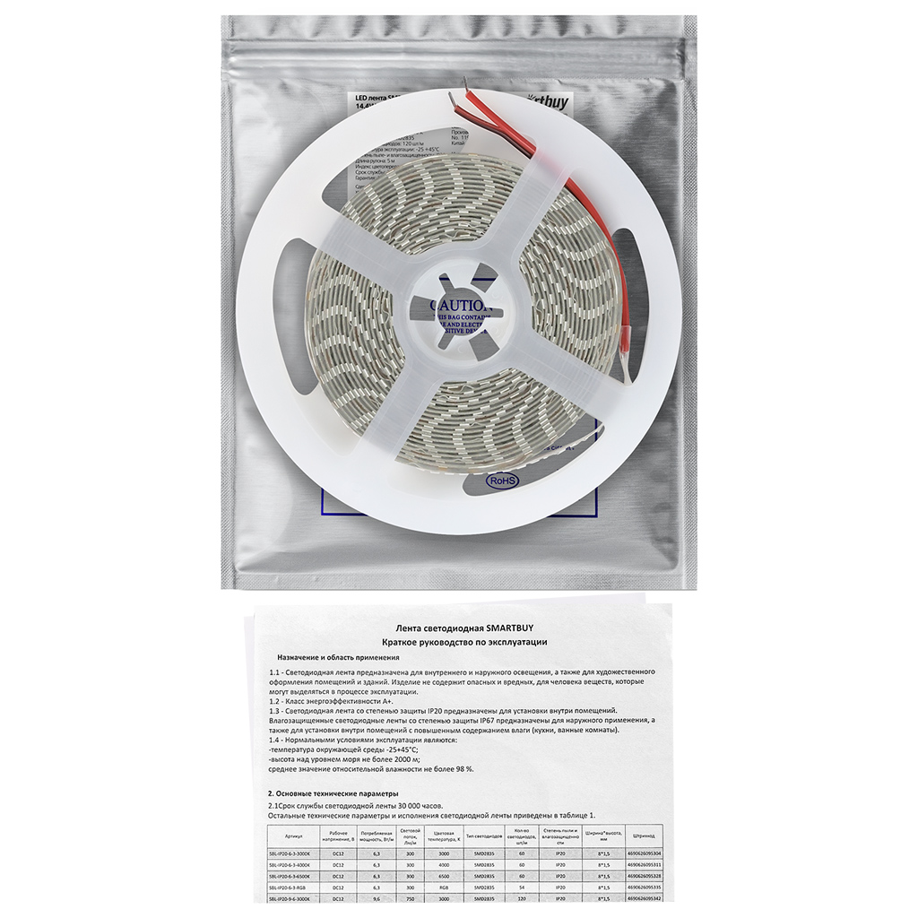 Каждая катушка с лентой SmartBuy укомплектована проводами для подключения к источнику питания.
