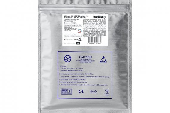 Двухслойная светодиодная LED лента SmartBuy сконструирована на базе светодиодов Epistar в корпусе 2835. Лента выпускается на гибкой печатной плате белого цвета шириной 8 мм и поставляется в катушках по 5 м. Срок службы светодиодной ленты Smartbuy составляет 30 000 часов.