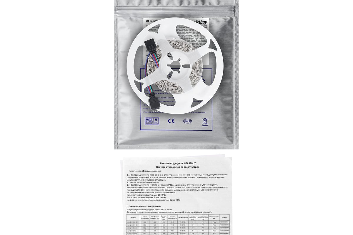 Технические характеристики Smartbuy SMD 2835/60 -IP20-6,3W/RGB 5 м. SBL-IP20-6-3-RGB