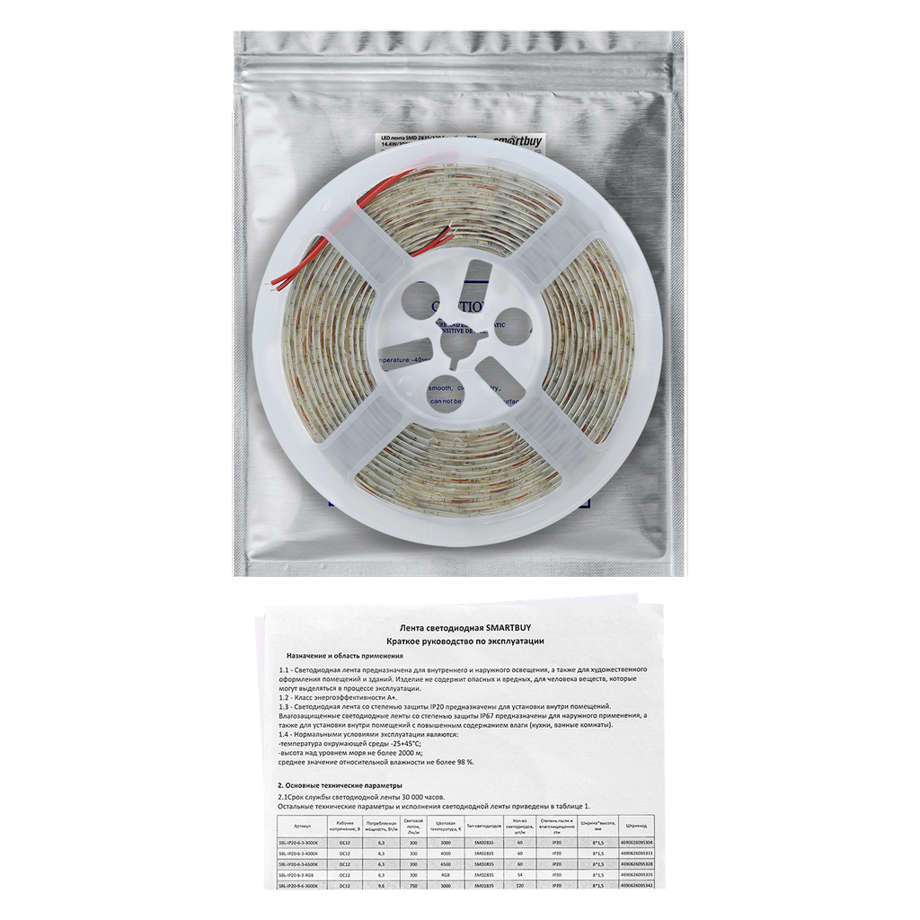 Технические характеристики Smartbuy 24V 2835/120 -IP65-14,4W/3000K 5 м. SBL-IP65-24V-14-4-3000K