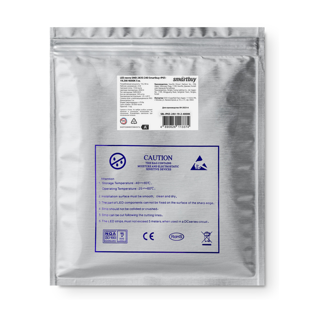 Преимущества Smartbuy 24V 2835/240 -IP65-19,2W/4000K 5 м. SBL-IP65-24V-19-2-4000K