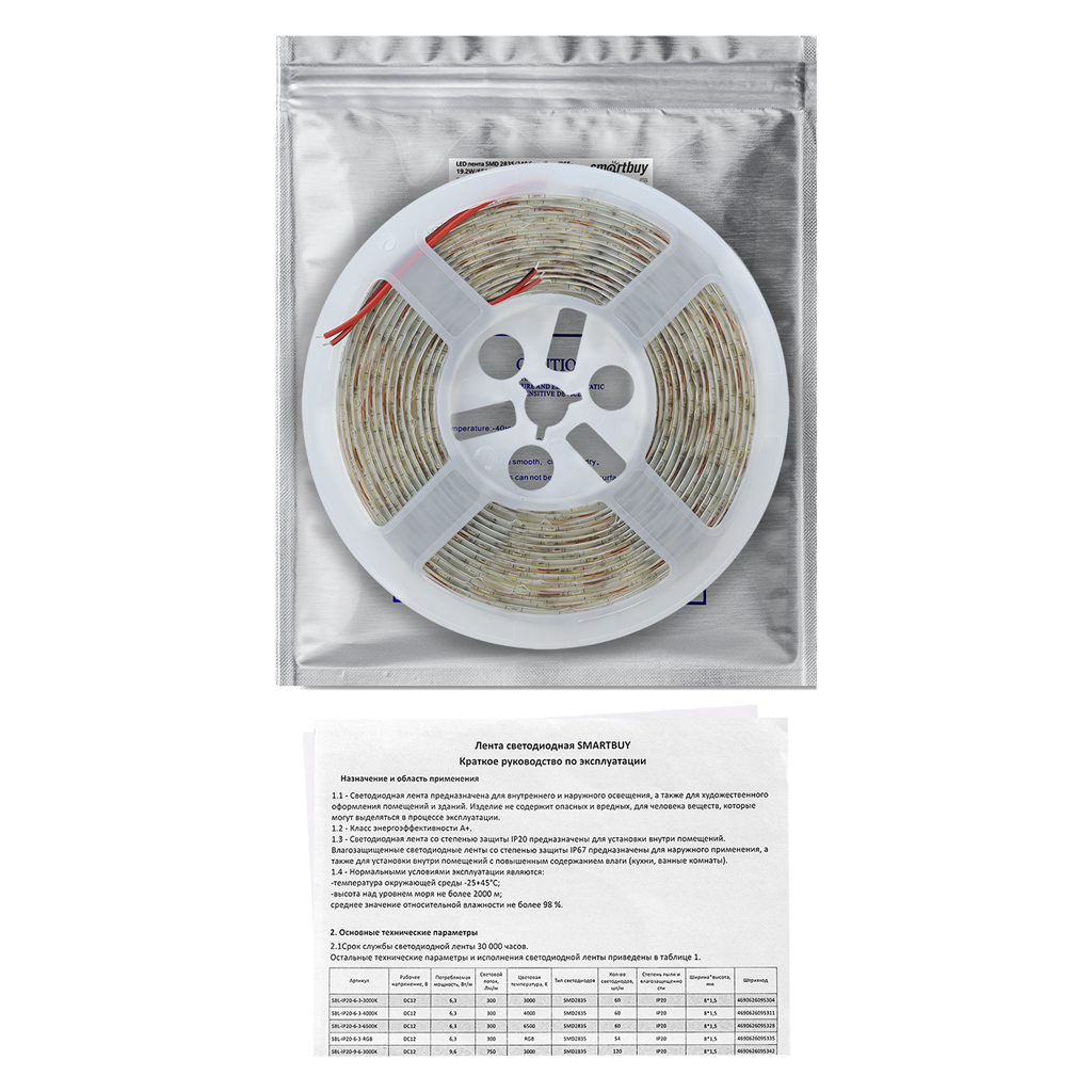 Каждая катушка с лентой SmartBuy укомплектована проводами для подключения к источнику питания.