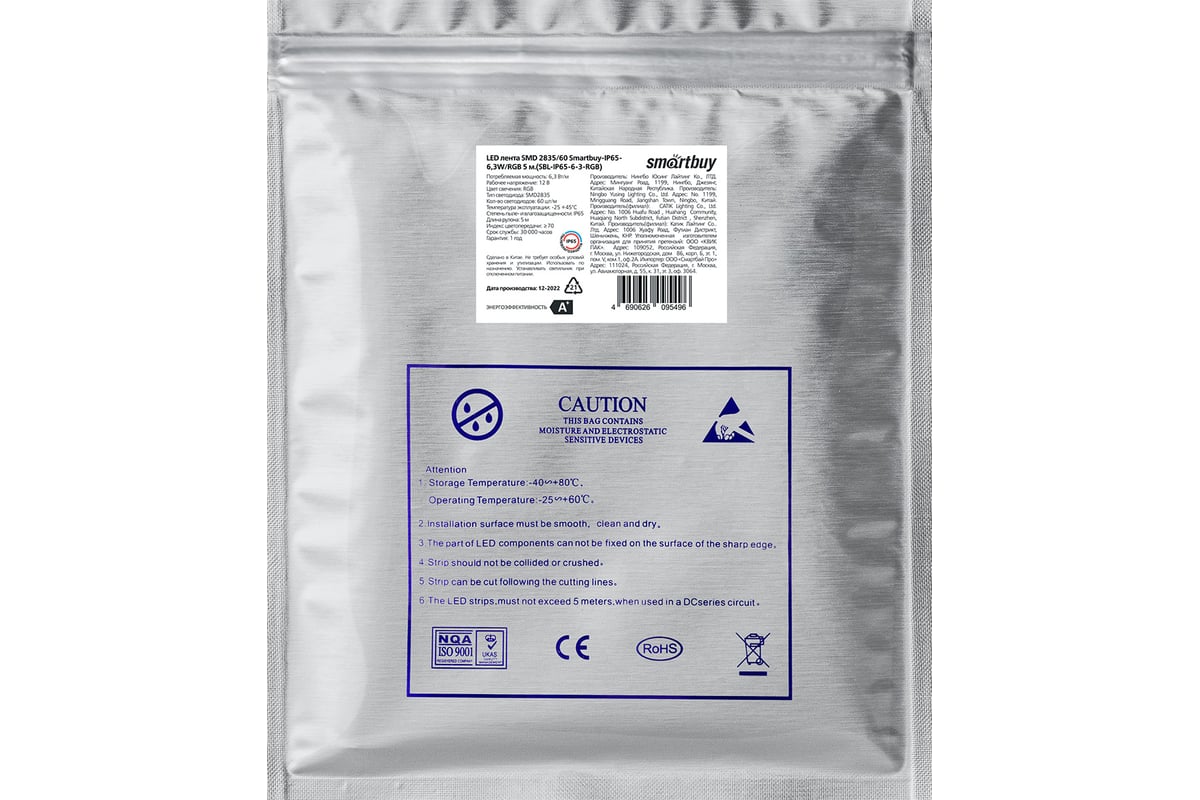 Технические характеристики Smartbuy SMD 2835/60 -IP65-6,3W/RGB 5 м. SBL-IP65-6-3-RGB