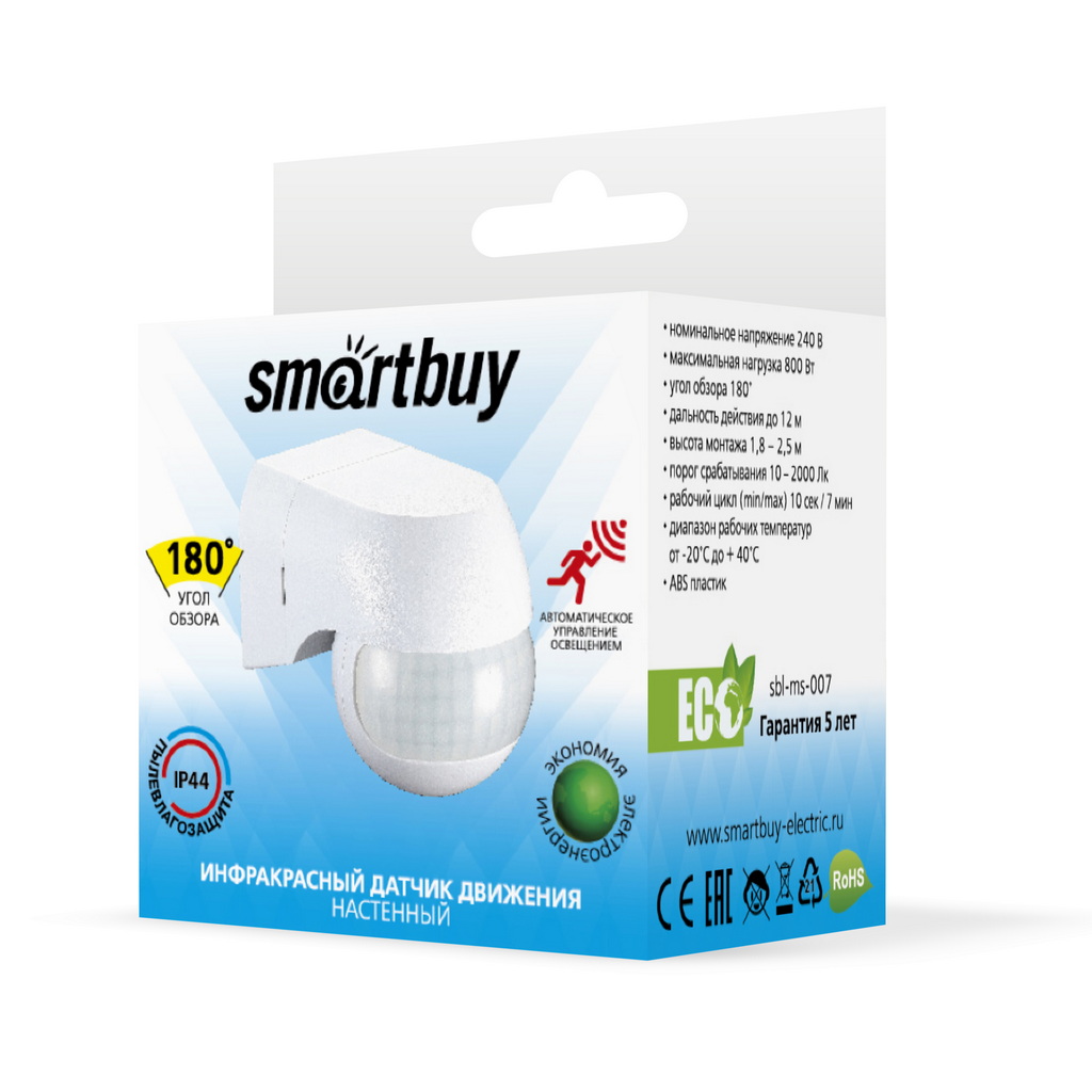 Инфракрасный датчик движения Smartbuy, настенный 800Вт, до 12м, IP44 (sbl-ms-007)