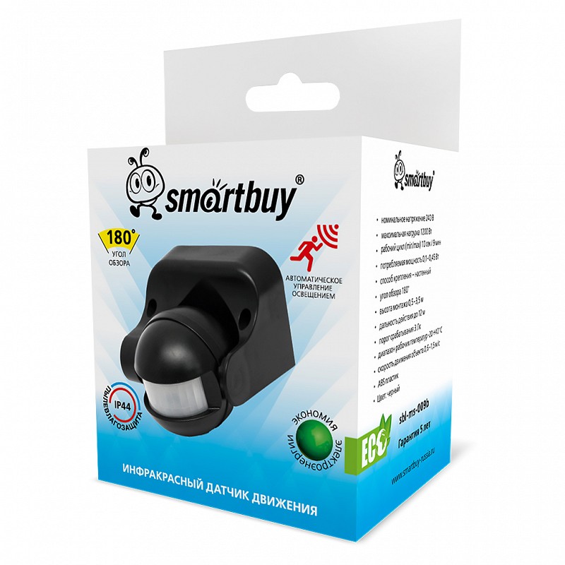 Инфракрасный датчик движения Smartbuy, настенный 1200Вт, до 12м, IP44, черный (sbl-ms-009b)