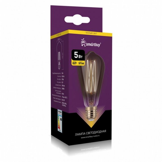 Светодиодная (LED) Лампа ART FLEX Smartbuy-ST64-5Вт/2400К/E27 (SBL-ST64FLEX-5-24K-E27)