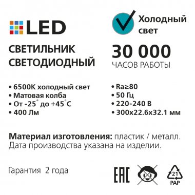 Светодиодный (LED) светильник T5 Smartbuy 5W матовый L300 mm (SBL-T5-5W-65K)