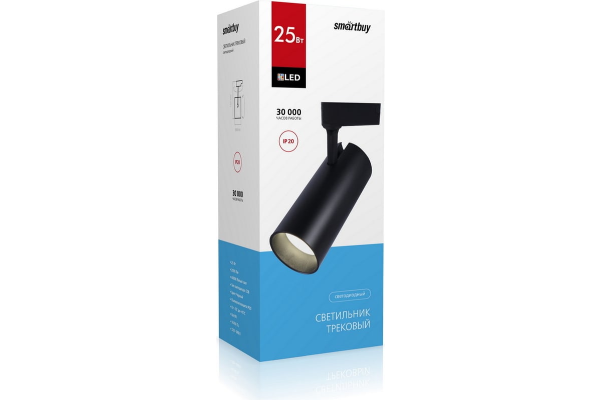 Светодиодный LED светильник Smartbuy Track COB25w Black4000K/IP20 SBL-TKBK-25w-4K — это источник освещения, который крепится к специальному шинопроводу.