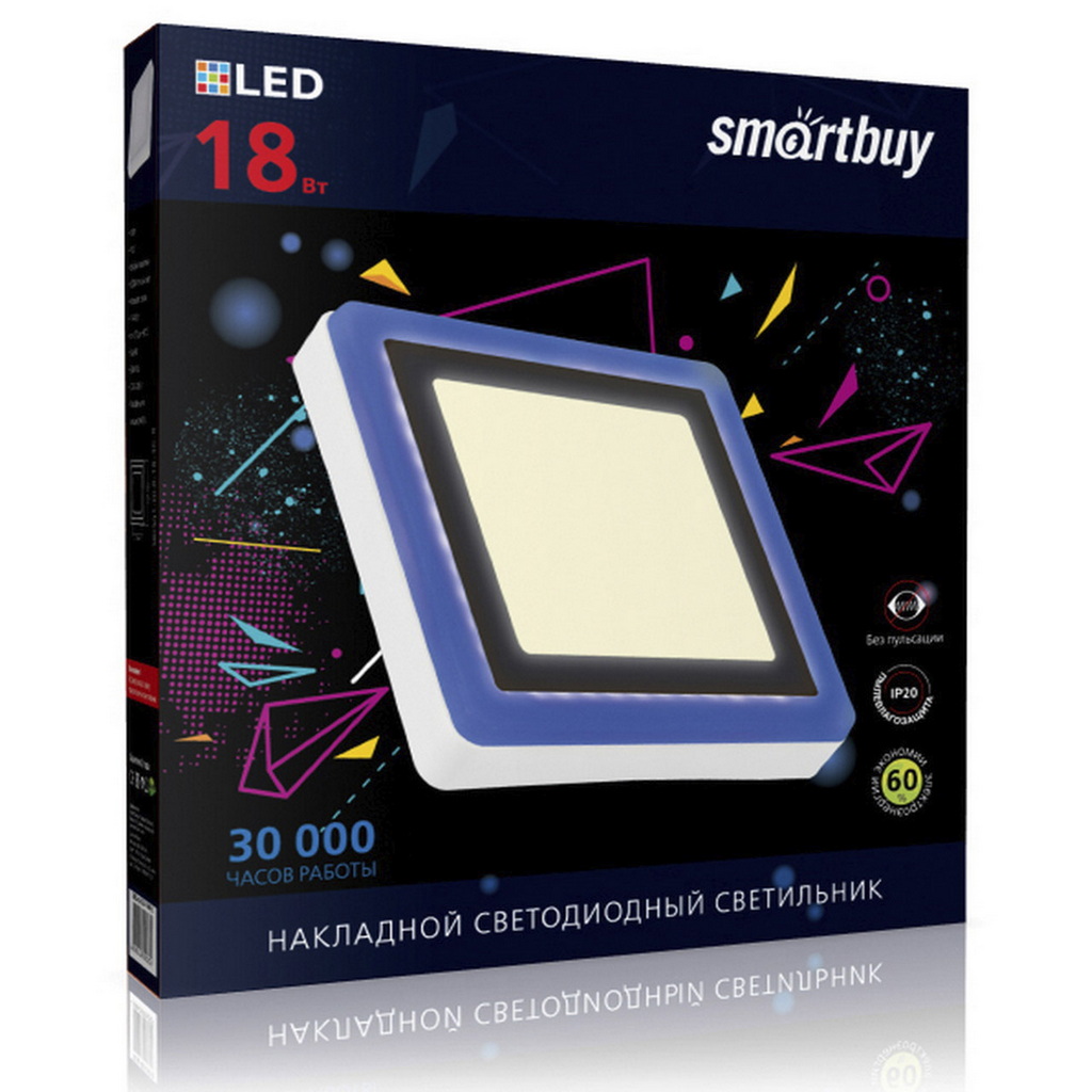 Smartbuy SBLSq1-DLB-18-3K-B Накладной (LED) светильник Квадрат с подсветкой DLB