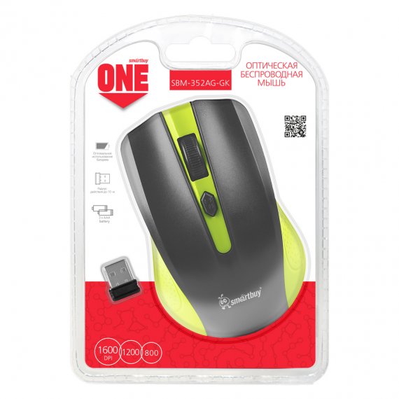 Мышь беспроводная Smartbuy ONE 352 зелено-черная (SBM-352AG-GK) / 60